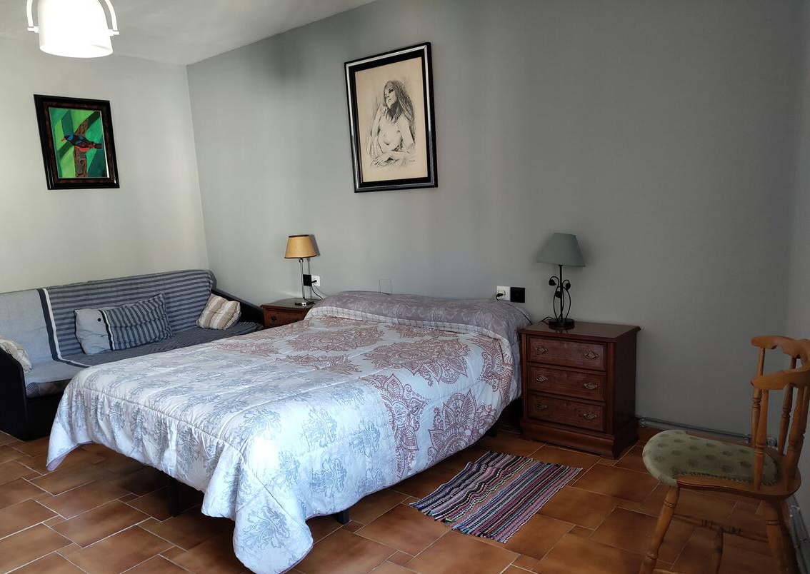 La cocina con tonalidades azules y blancas, dispone de todos los elementos necesarios, así como de vajilla y electrodomésticos. Para descansar hay un dormitorio con cama de matrimonio que se encuentra sobre una estructura de forja. Además, la ropa de cama también se incluye. Para finalizar, el cuarto de baño con ducha a ras de suelo y toallas.